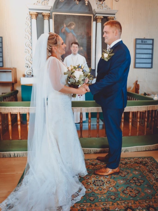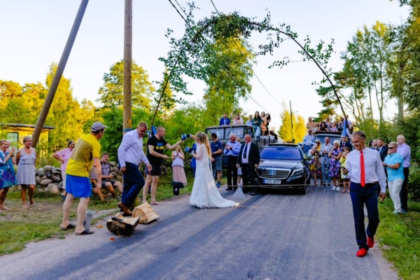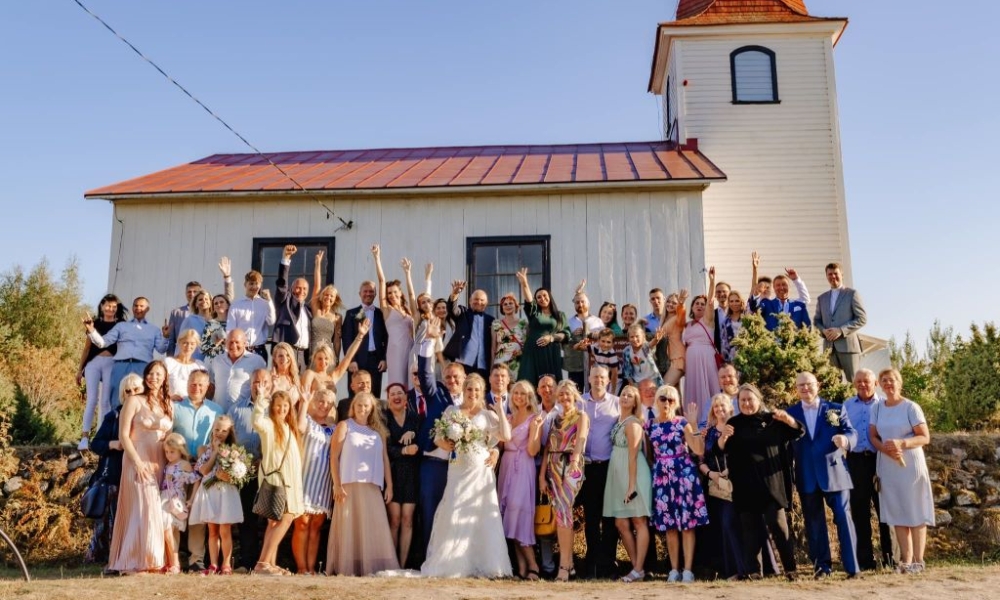 Väike ja armas Prangli kirik viib läbi laulatuse ning läbi saare looklev pulmarong saab külarahva poolt vallatuid pulmaväravaid läbida.